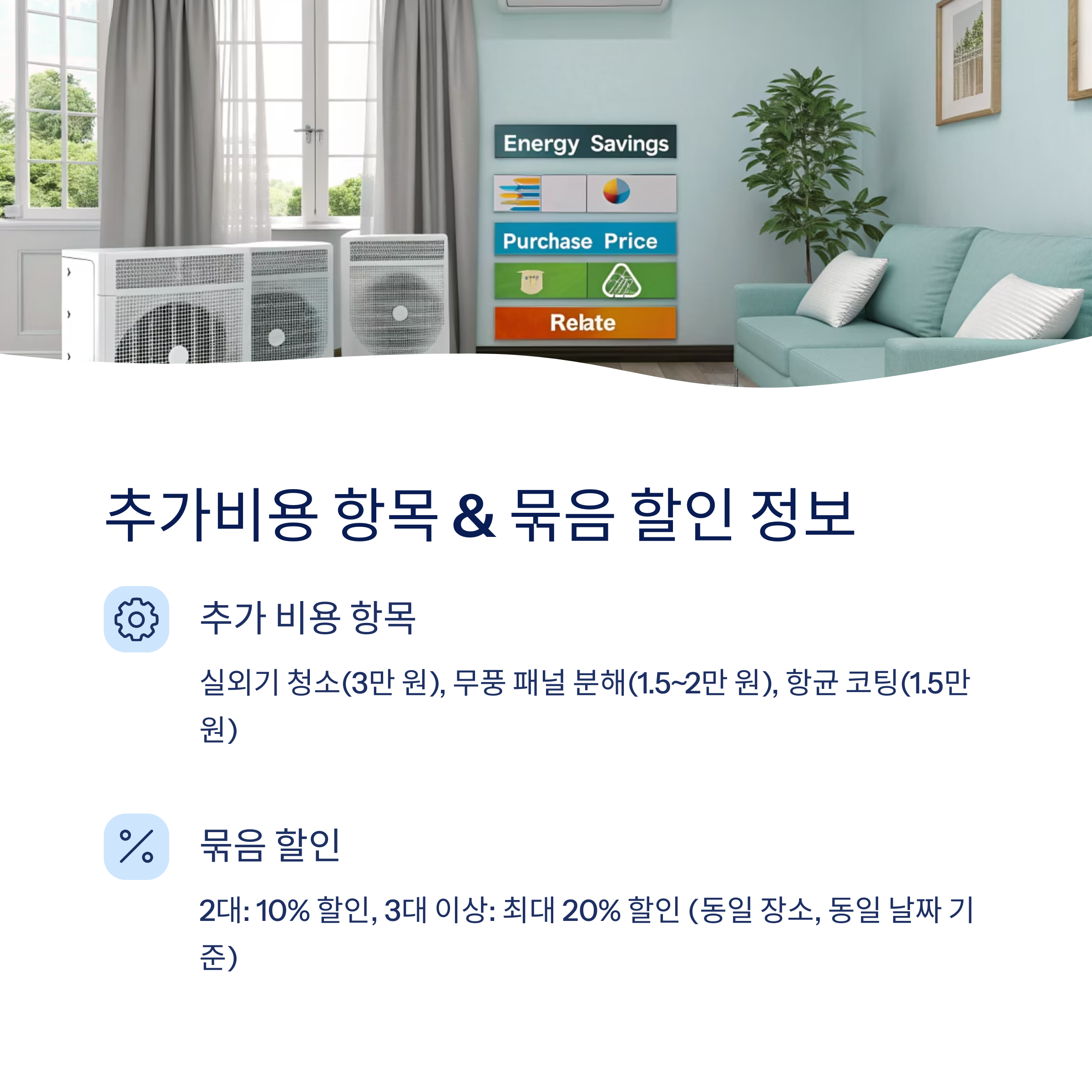 기본 청소 외에 송풍팬, 열교환기 추가 여부에 따라 금액이 달라집니다.