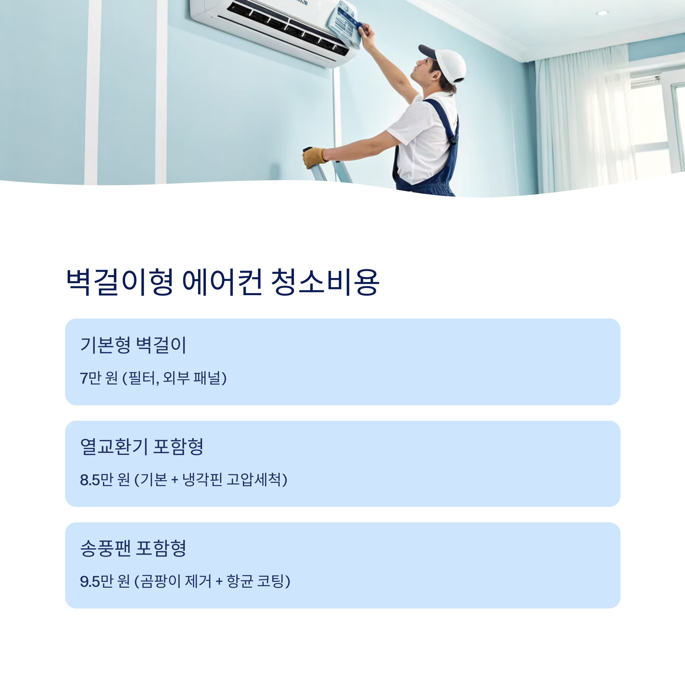 | 송풍팬 포함형 | 9.5만 원 | 곰팡이 제거 + 항균 코팅 추가 |