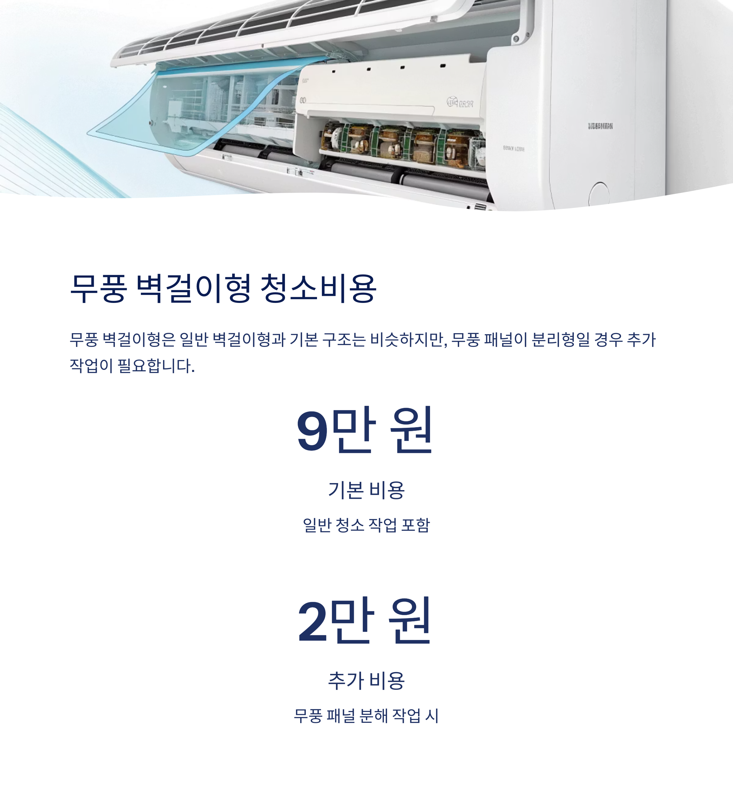 | 무풍 벽걸이형 | 9만 원 | +1.5~2만 원 |
