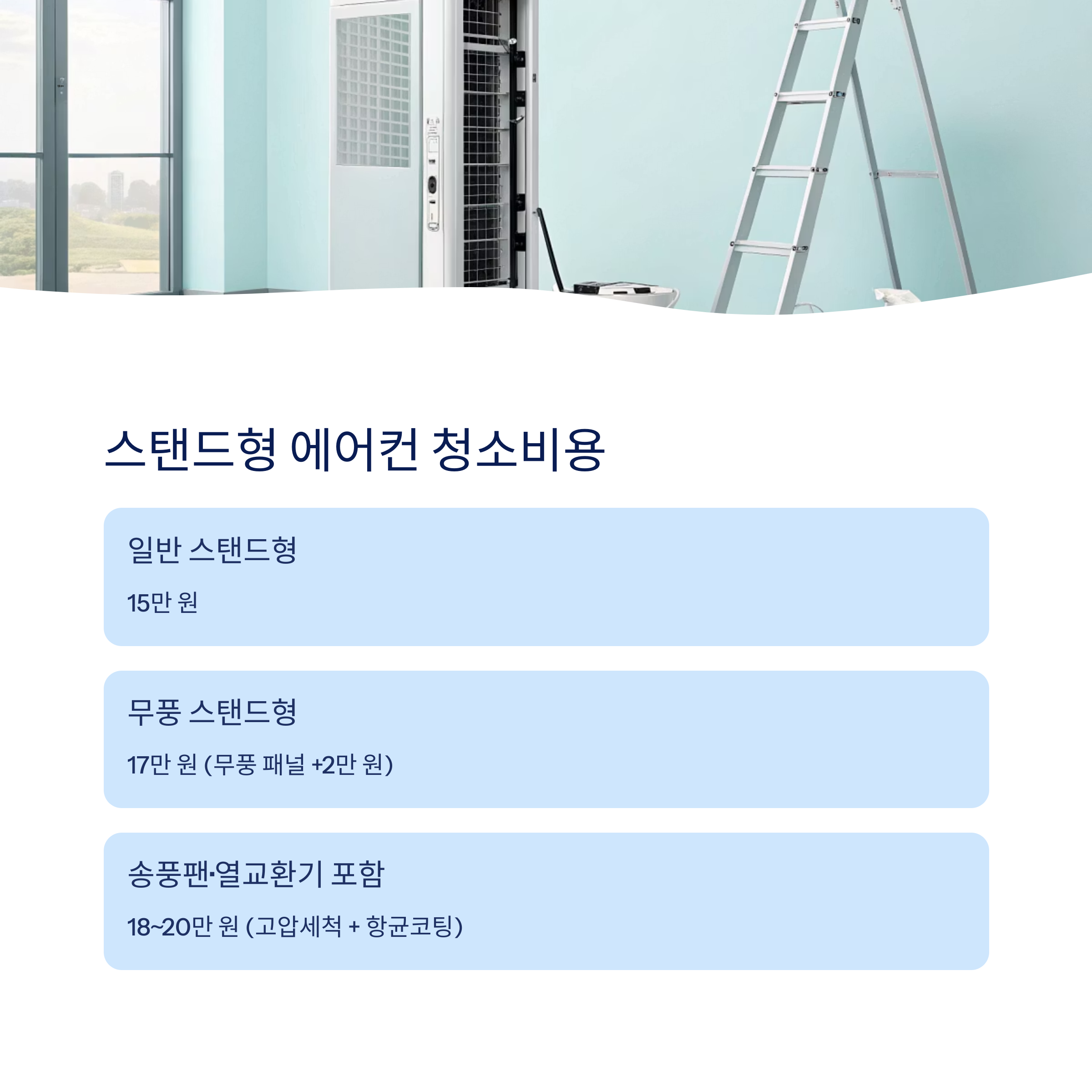 | 송풍팬·열교환기 포함 | 18~20만 원 | 고압세척 + 항균코팅 포함 |