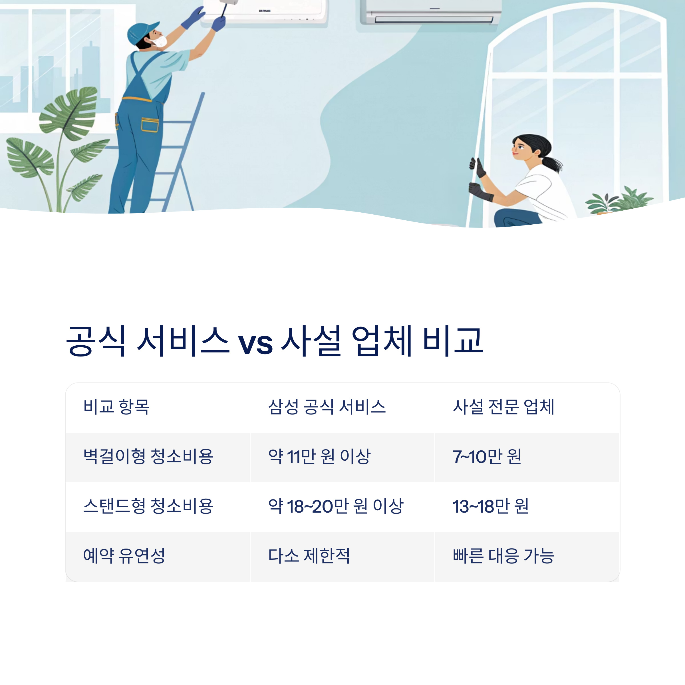 | 벽걸이형 청소비용 | 약 11만 원 이상 | 7~10만 원 |