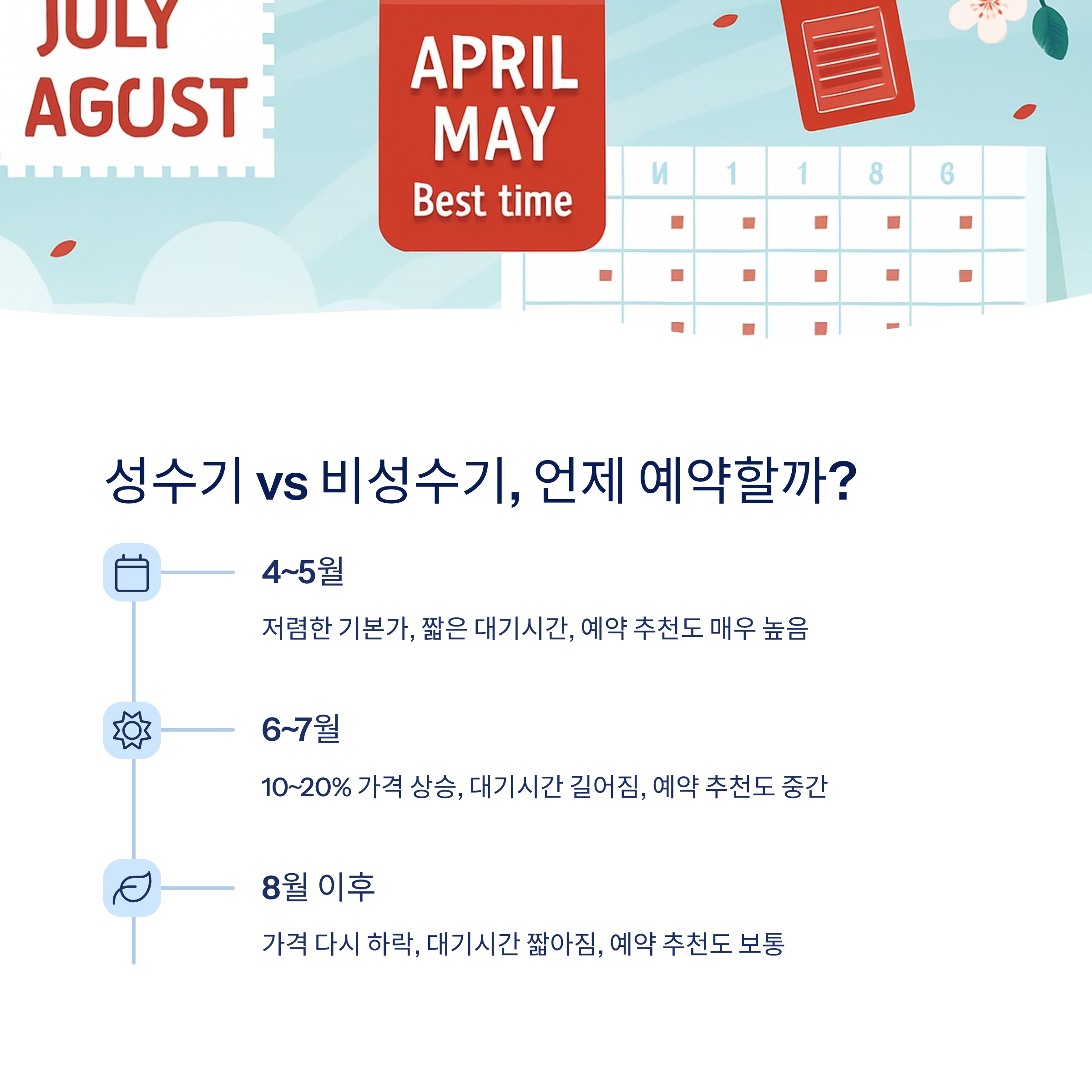 4~5월 미리 예약하면 비용과 대기 시간 모두 줄일 수 있습니다.