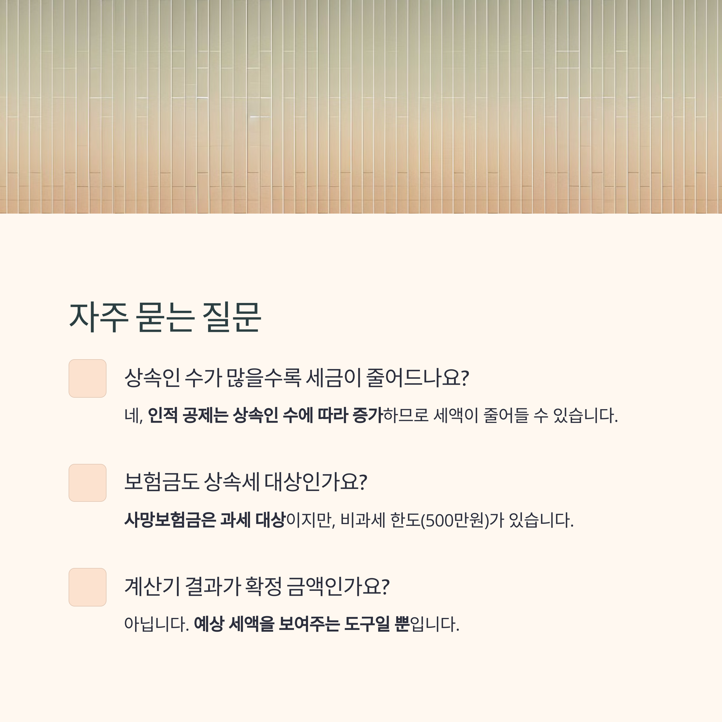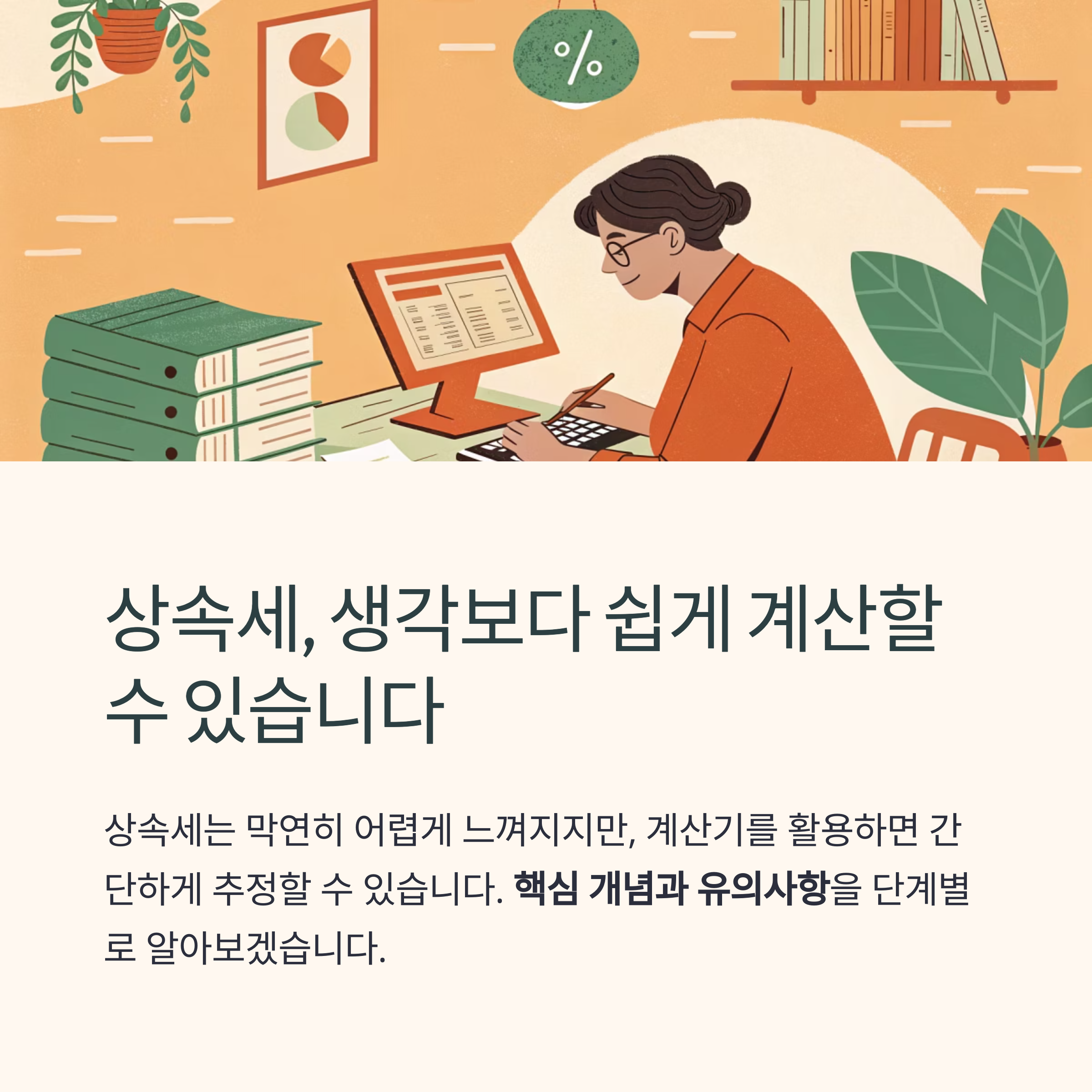 상속세는 막연히 어렵고 복잡하다는 인식이 많지만, 계산기를 활용하면 간단하게 추정할 수 있습니다.