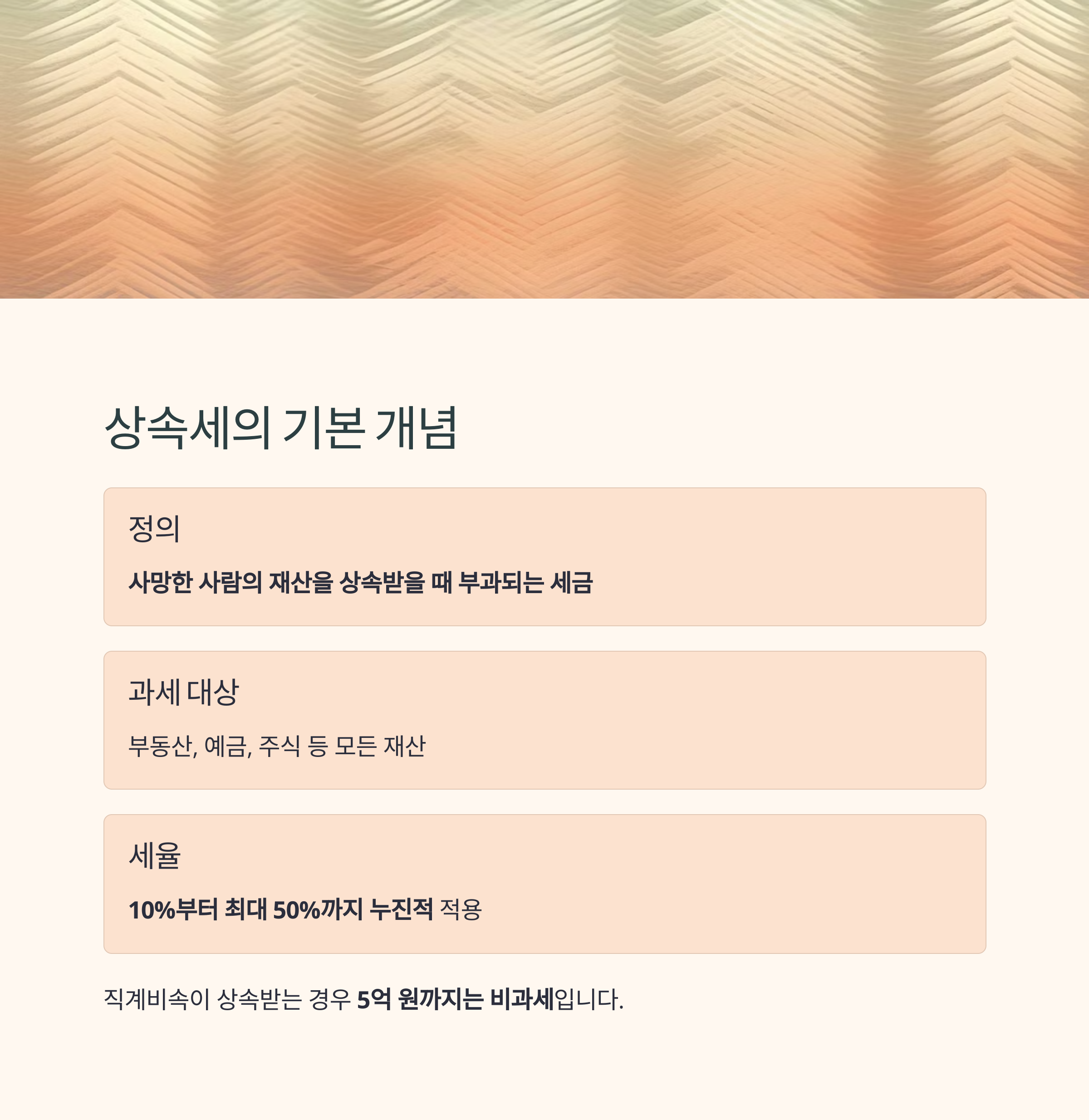 상속세는 사망한 사람의 재산을 상속받을 때 부과되는 세금입니다.