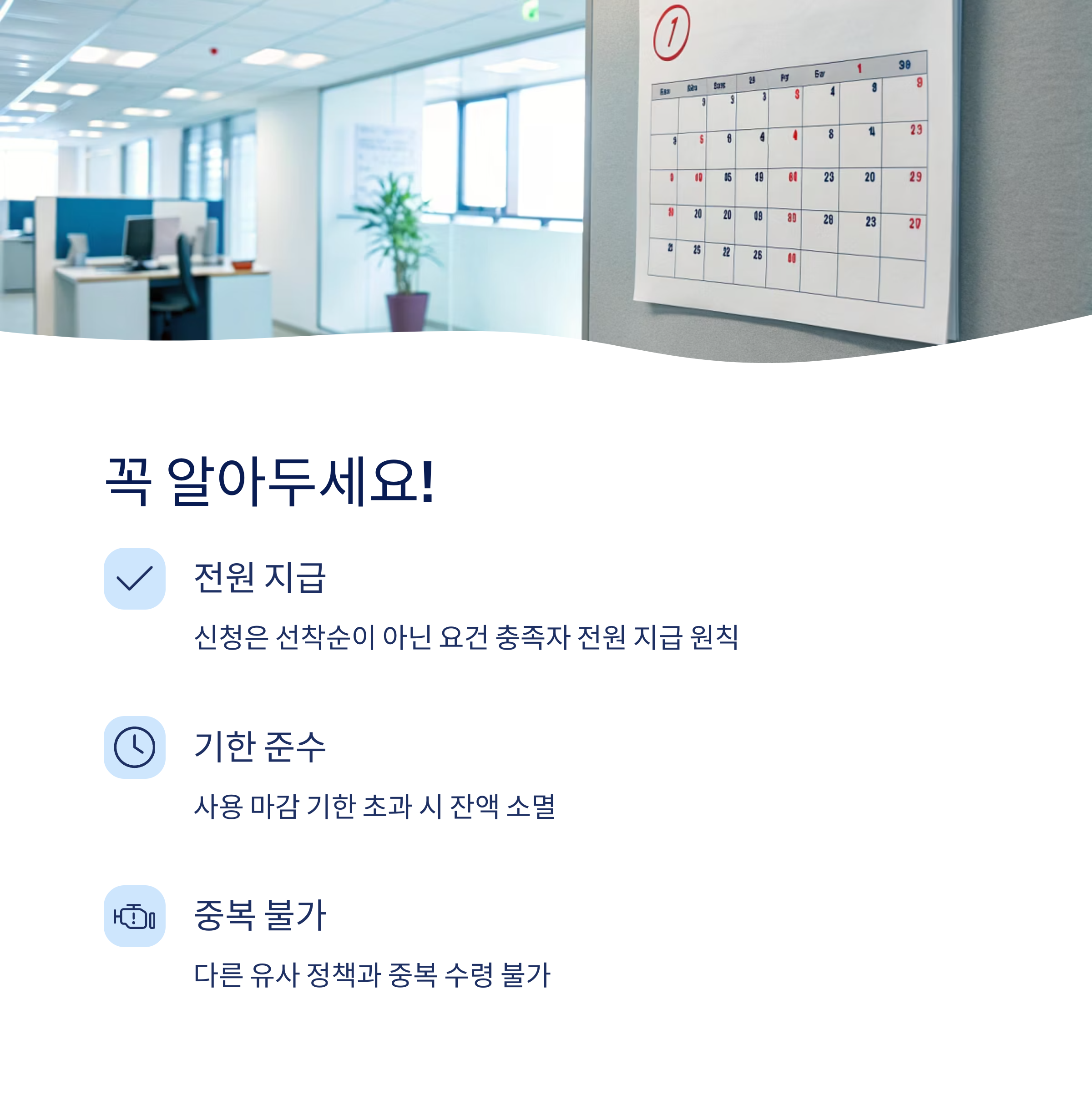 • 다른 유사 정책(예: 공과금 지원 바우처)과 중복 수령 불가