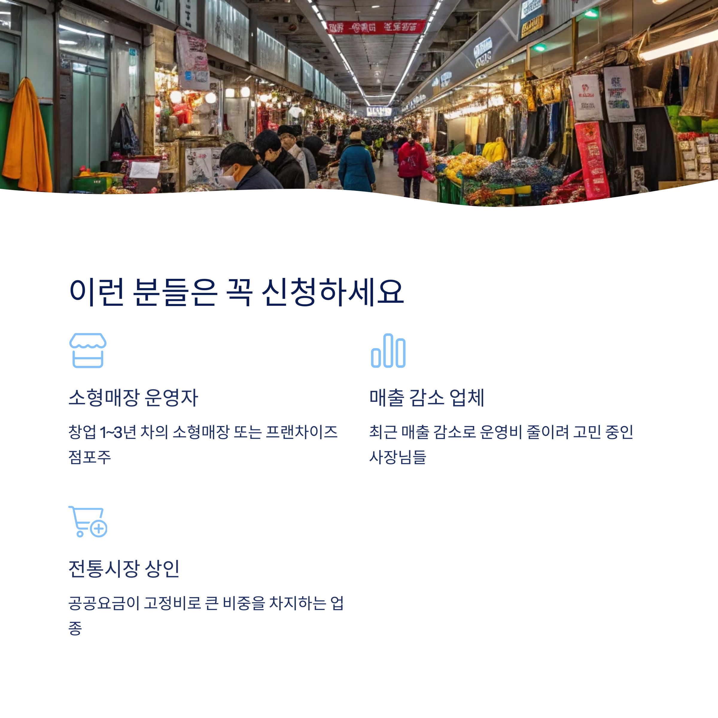 • 지역 소상공인, 전통시장 상인 등 공공요금이 고정비로 큰 비중을 차지하는 업종