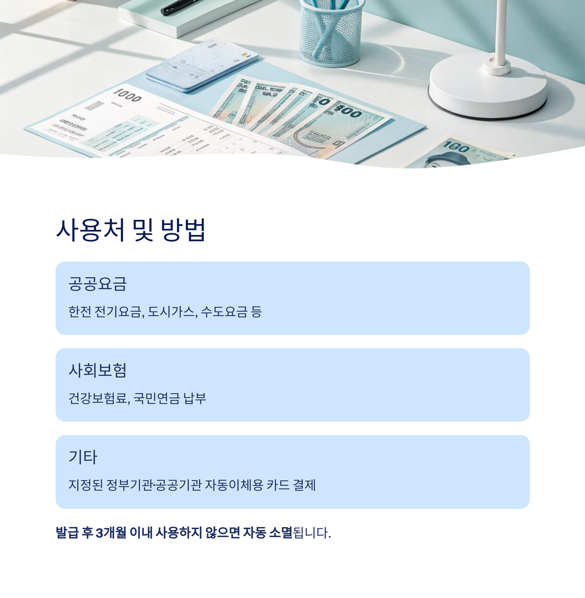 사용처 전기세, 도시가스, 건강보험료 납부 등