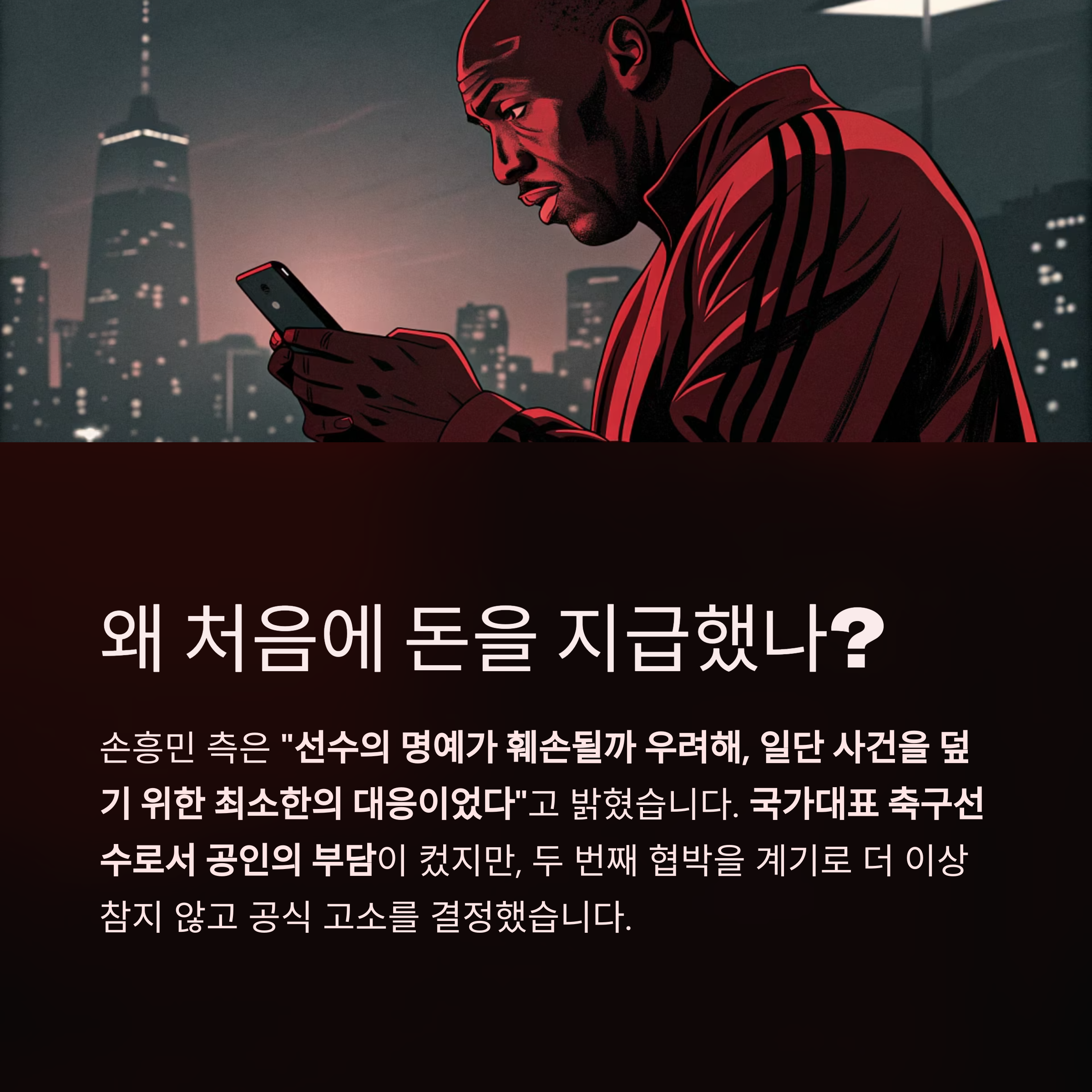 손흥민 측은 “선수의 명예가 훼손될까 우려해, 일단 사건을 덮기 위한 최소한의 대응이었다”고 밝혔습니다.