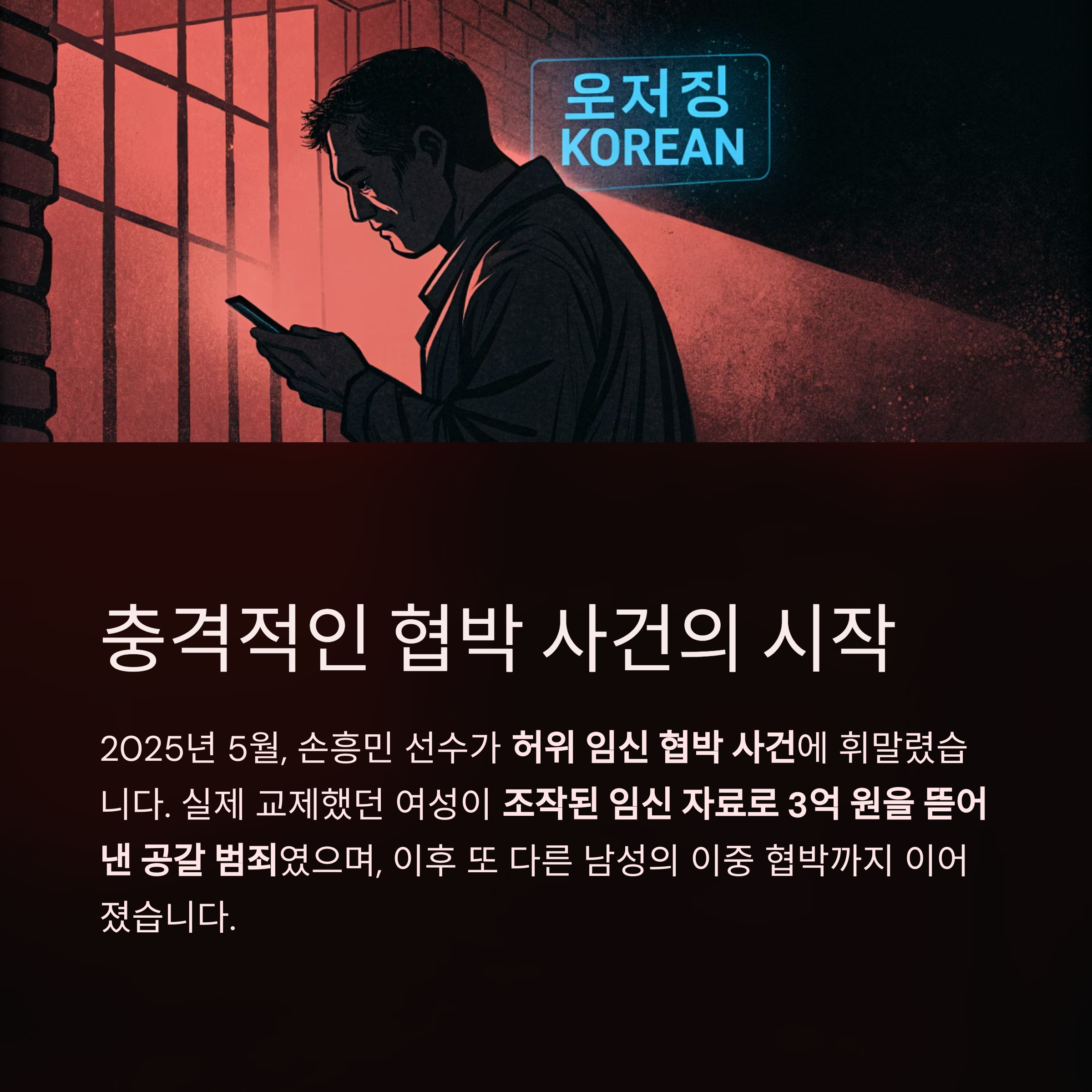 이번 사건(손흥민 허위 임신 협박 사건)은 단순히 유명인을 향한 사기극을 넘어,