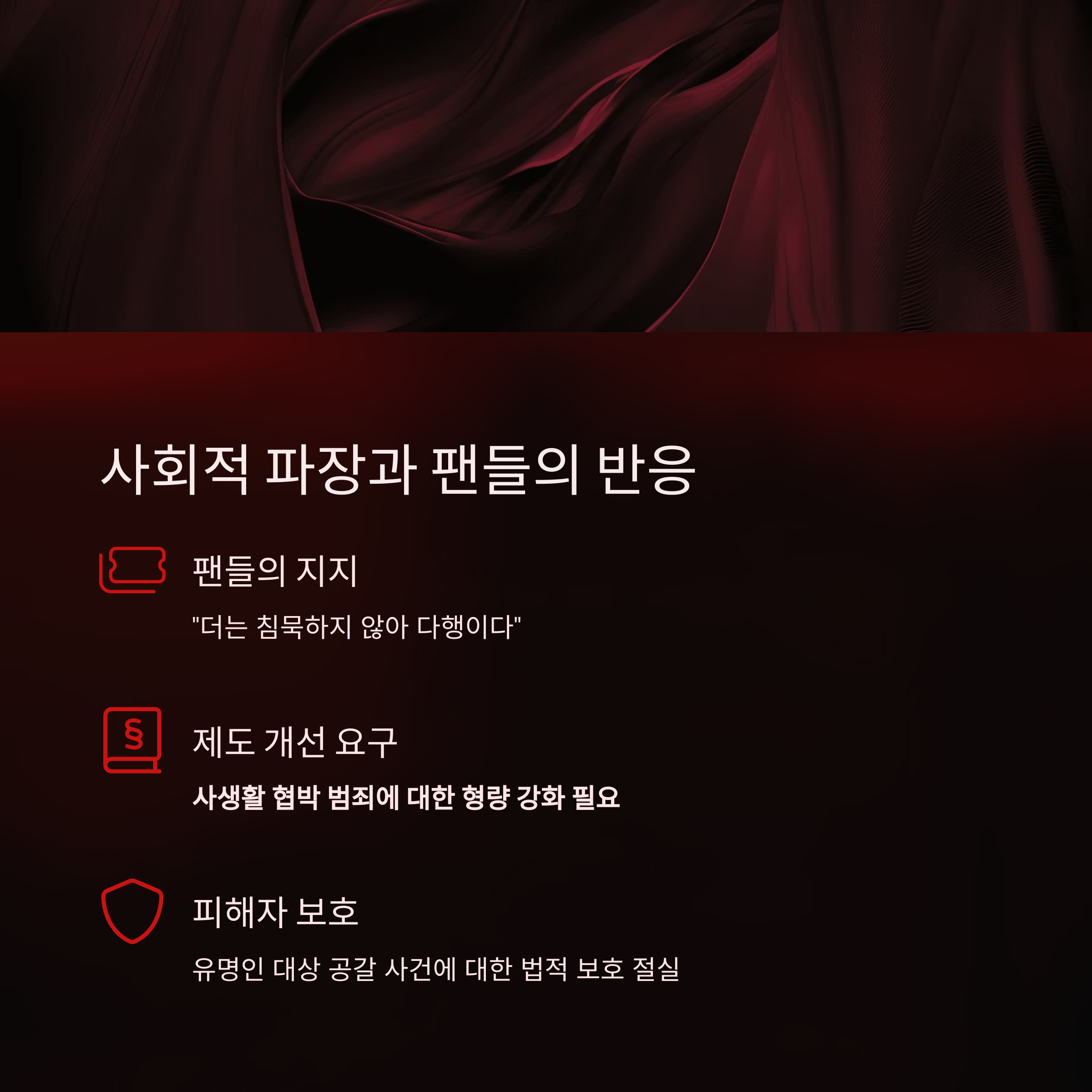 공인을 노린 ‘사생활 협박 범죄’에 대한 형량 강화와 제도 보완이 필요하다는 목소리도 나오고 있습니다.