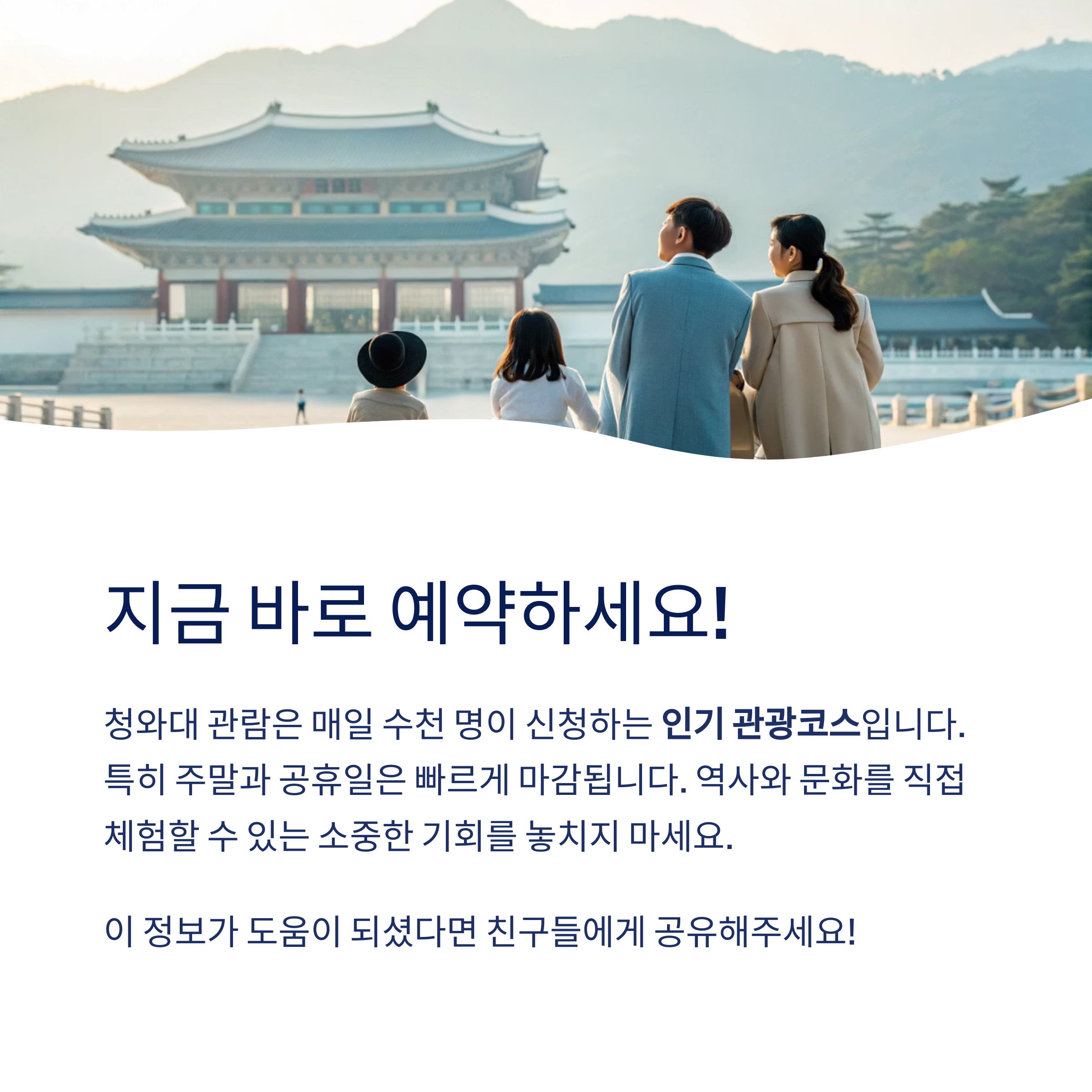 지금 바로 아래 버튼을 통해 청와대 관람 예약을 완료하세요.
