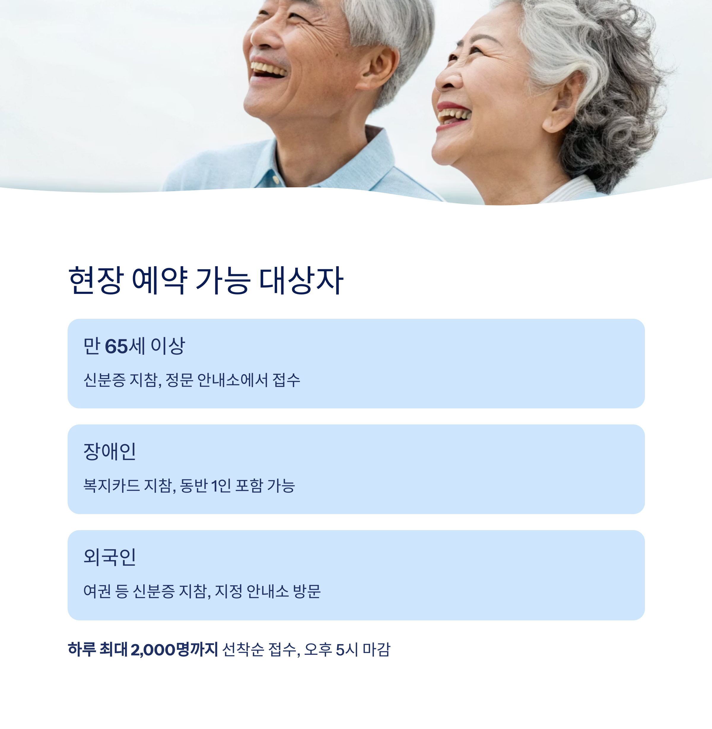 현장 예약도 가능한가요? 예, 일부 대상자에 한해 가능합니다