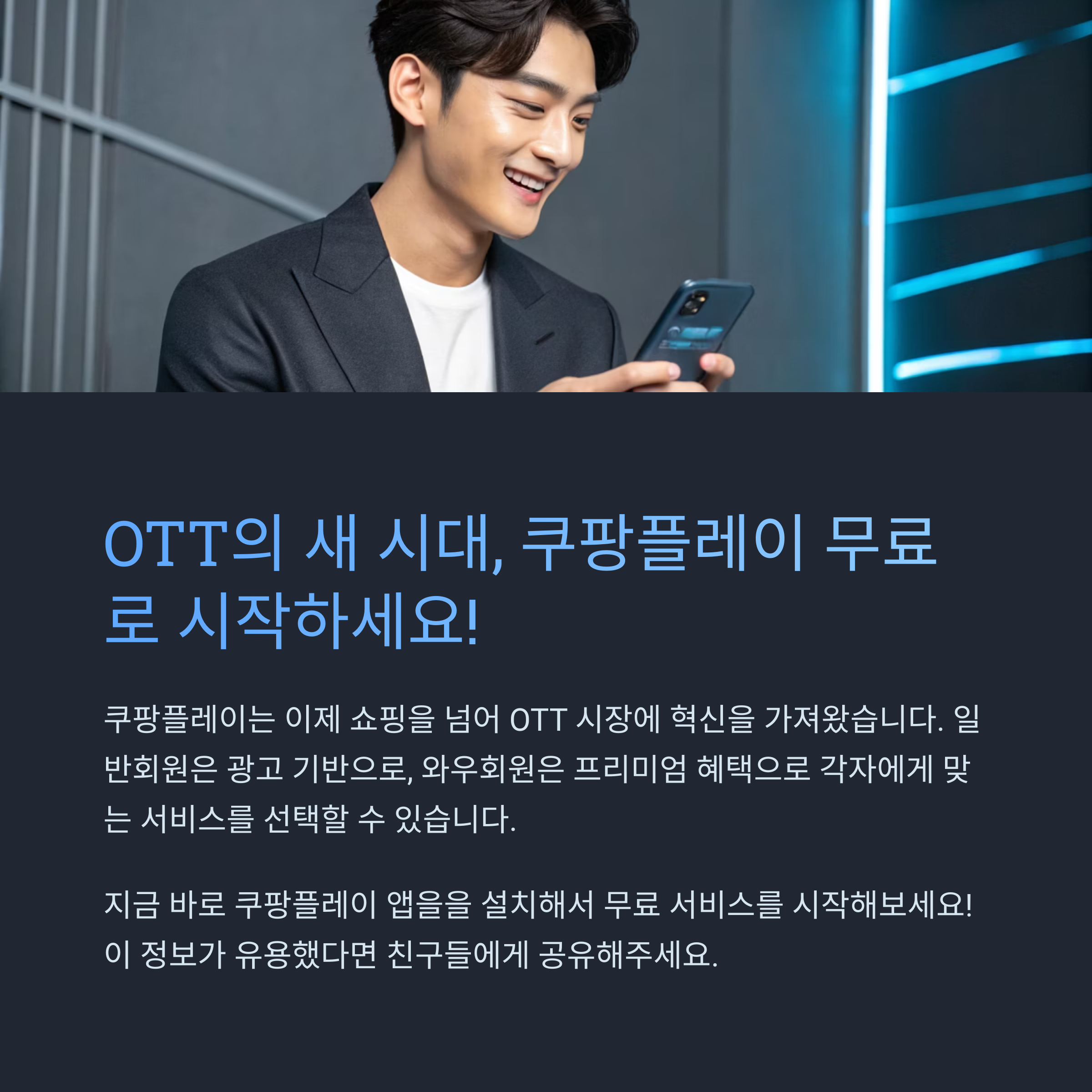 쿠팡은 단순한 쇼핑 플랫폼을 넘어 이제는 ‘쿠팡플레이 무료’라는 이름으로 OTT 시장에 강력한 변화를 일으키고 있습니다. 일반회원도 광고 기반으로 부담 없이 시청하고, 와우회원은 더 고급스럽게 콘텐츠를 즐길 수 있는 구조는 소비자 입장에서 최적화된 선택입니다. OTT도 이제는 유료만 고집할 필요 없어요. 지금 바로 ‘쿠팡플레이 무료’로 시작해보세요!