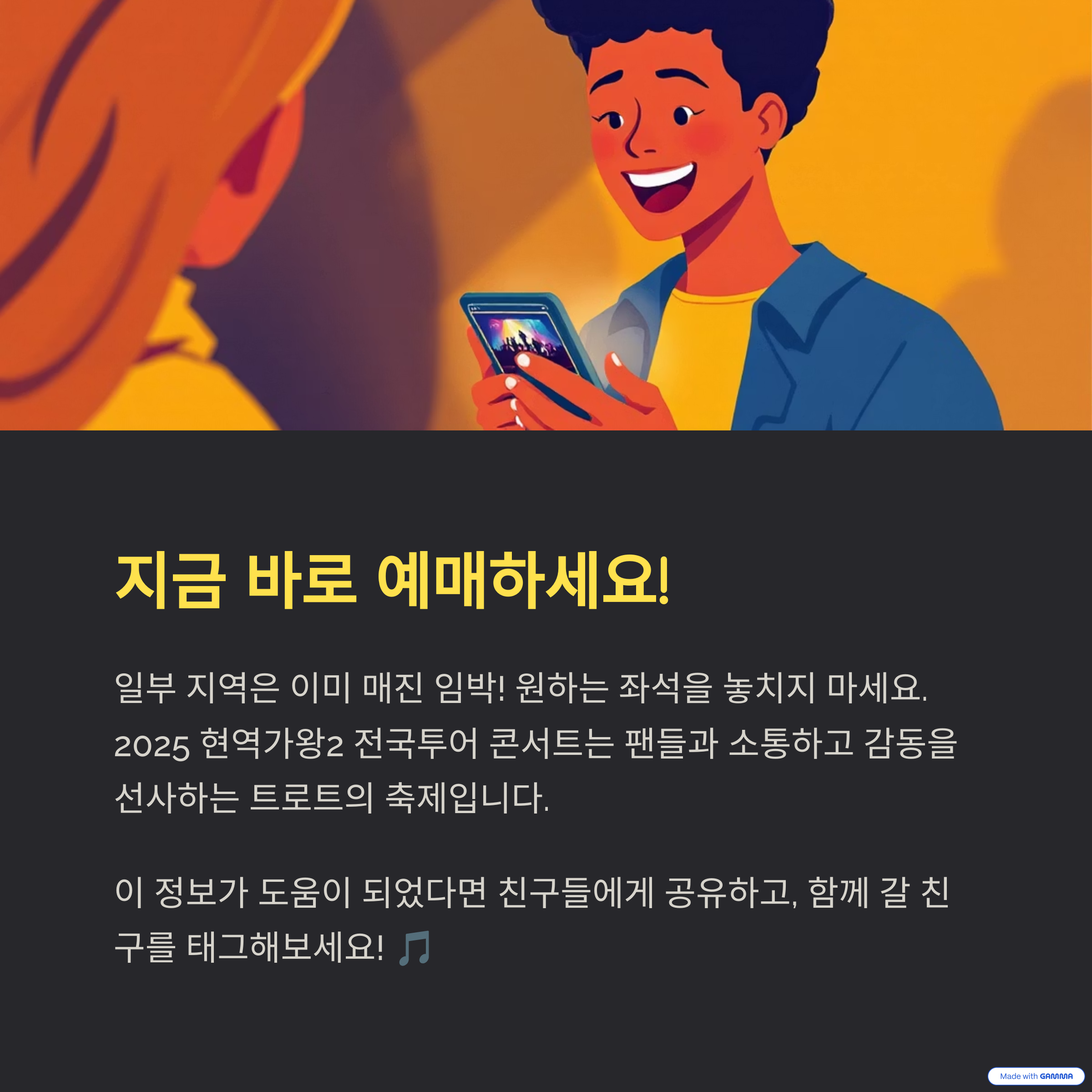 2025 현역가왕2 전국투어 콘서트는 단순한 콘서트가 아닙니다. 팬들과 소통하고, 진심 어린 무대로 감동을 선사하는 트로트의 축제입니다.