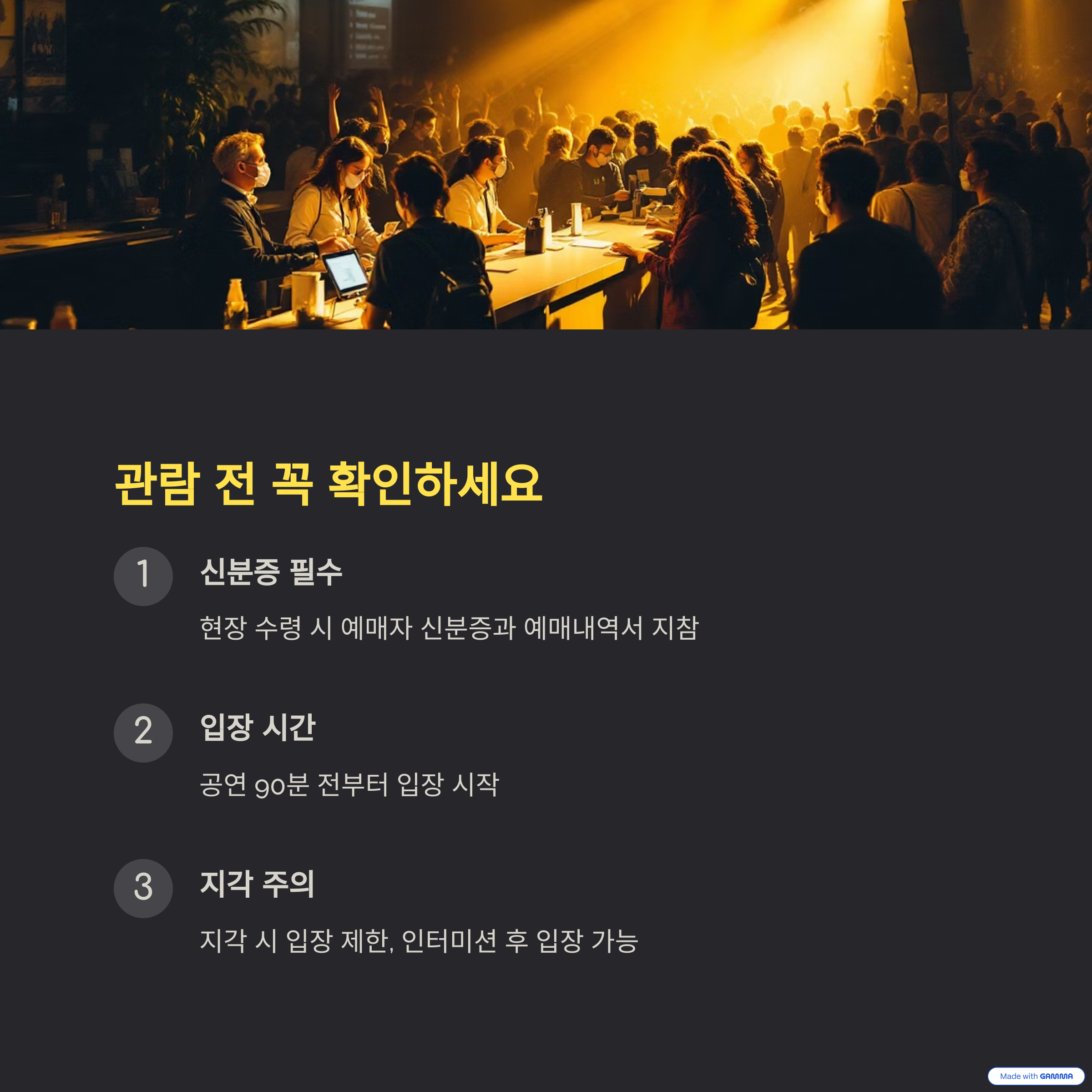 - 현장 수령 시 예매자 신분증 + 예매내역서 필수