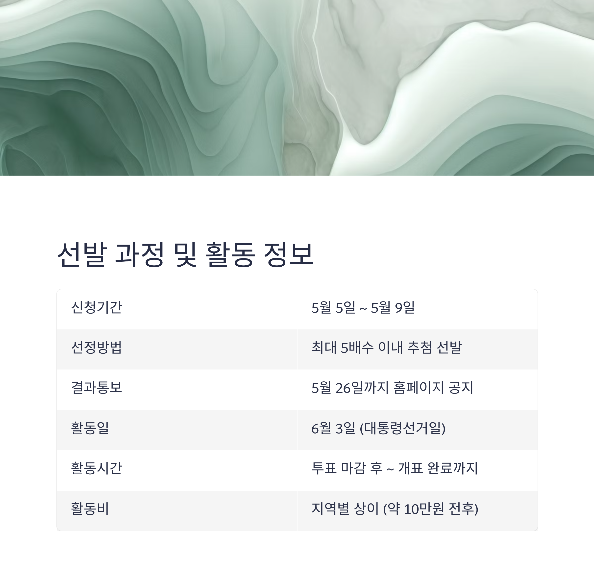 투표보다 더 가까운 자리에서 선거를 지켜볼 수 있는 소중한 경험이 될 것입니다.