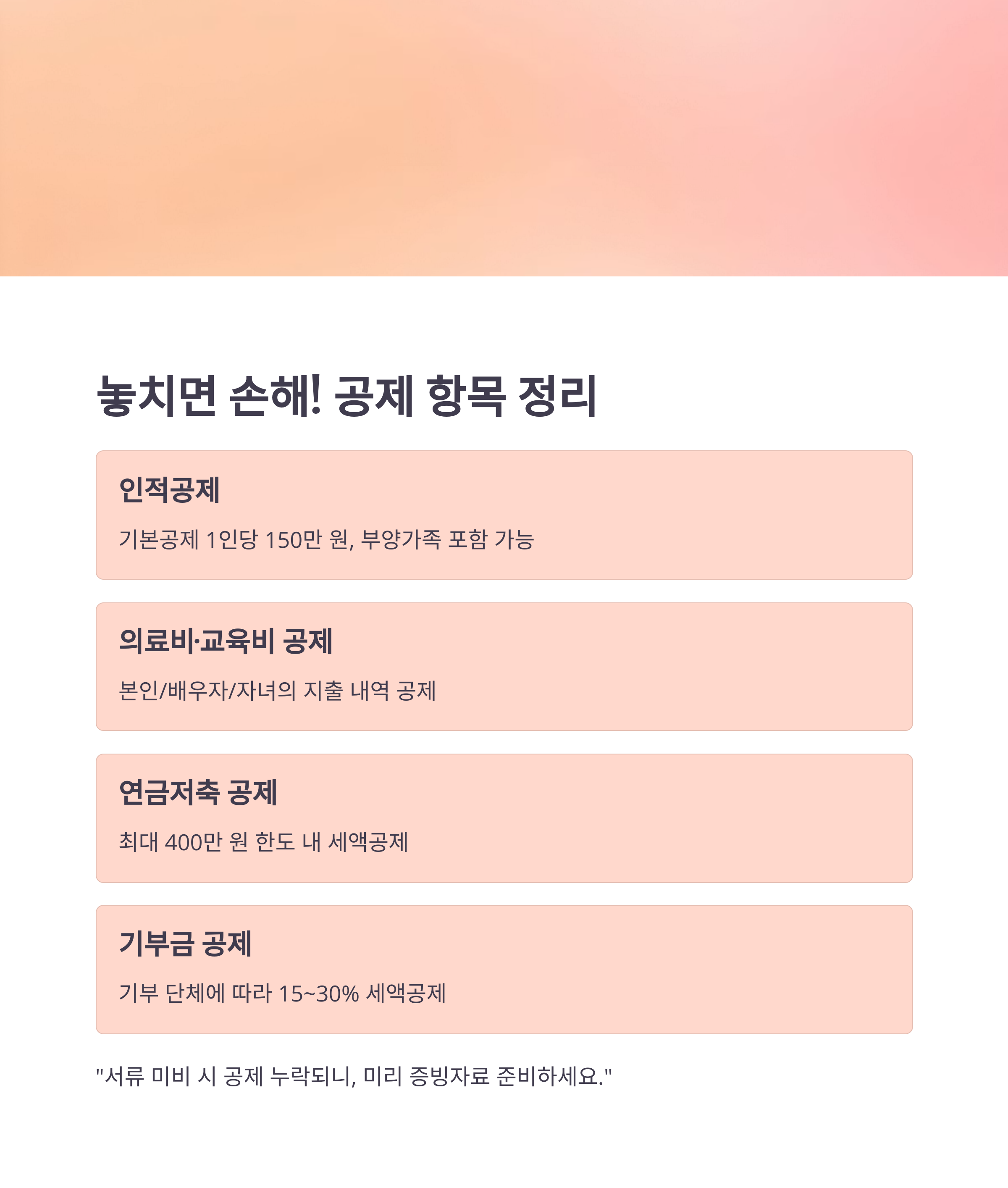 "서류 미비 시 공제 누락되니, 미리 증빙자료 준비하세요."