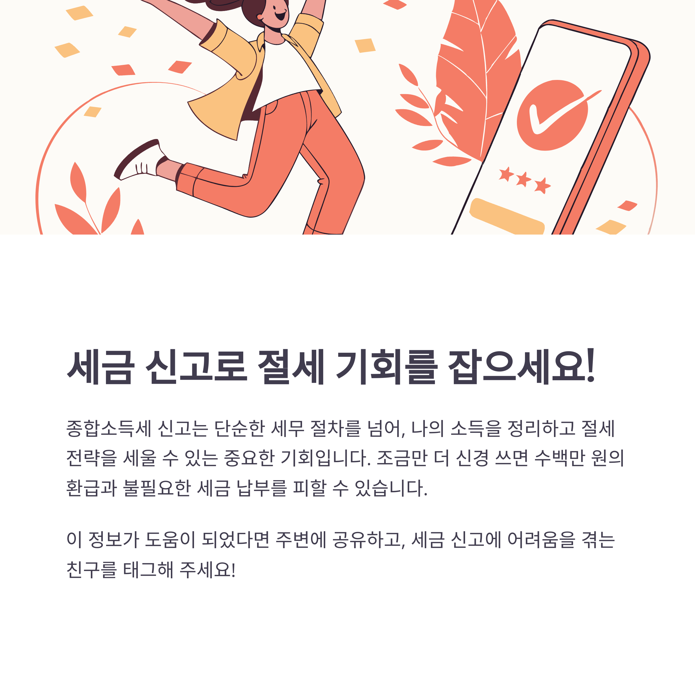 종합소득세 신고는 단순한 세무 절차를 넘어, 나의 소득을 정리하고 절세 전략을 세울 수 있는 중요한 기회입니다.