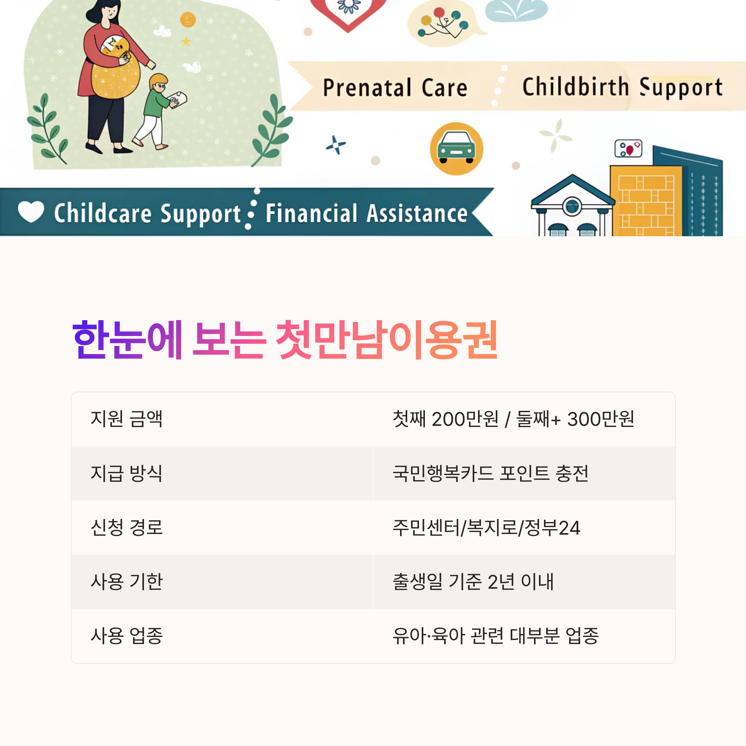 첫만남이용권은 출산 초기 비용을 지원해주는 국가 복지 제도로,