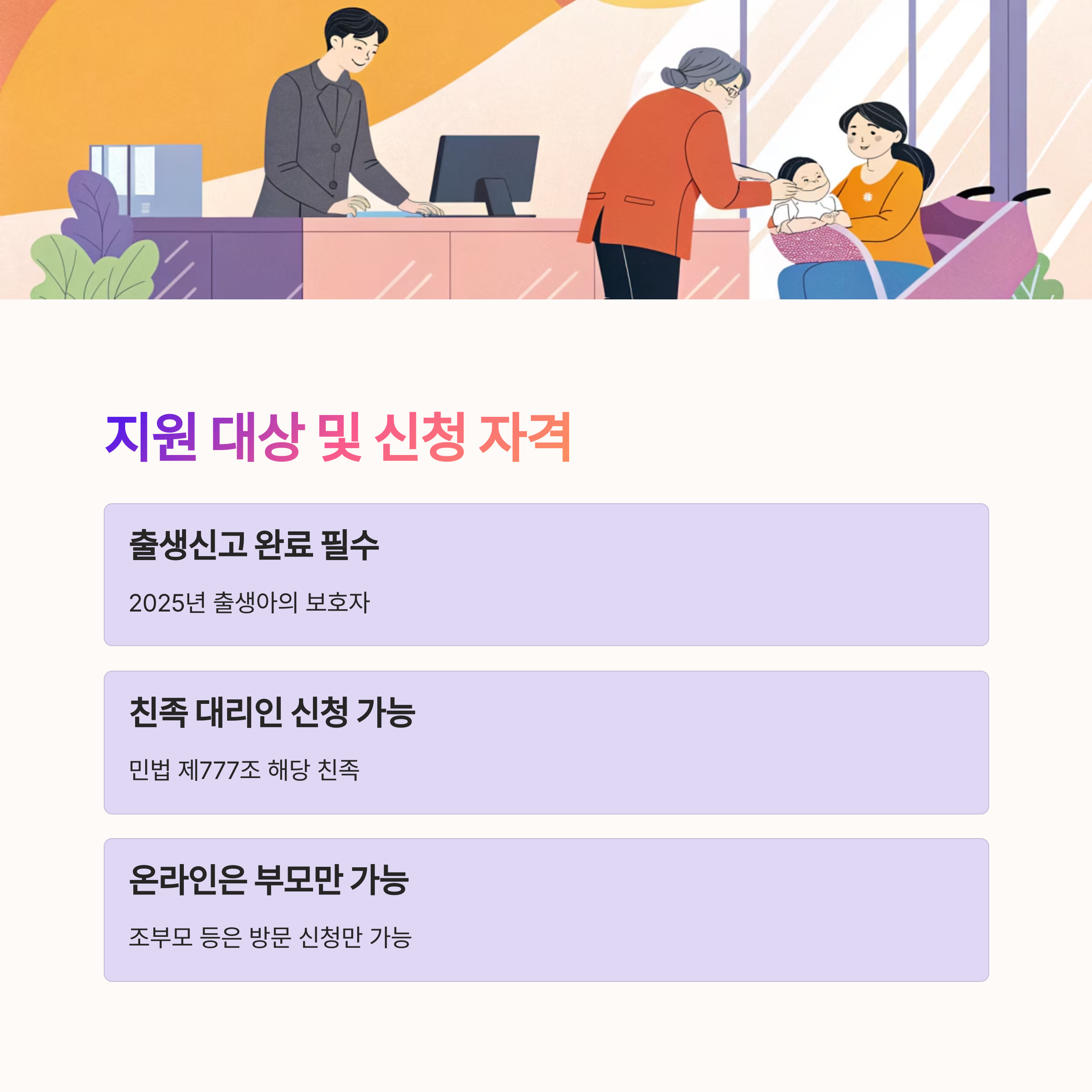 • 출생신고를 완료한 2025년 출생아의 보호자 (부모, 조부모, 법정대리인 등)