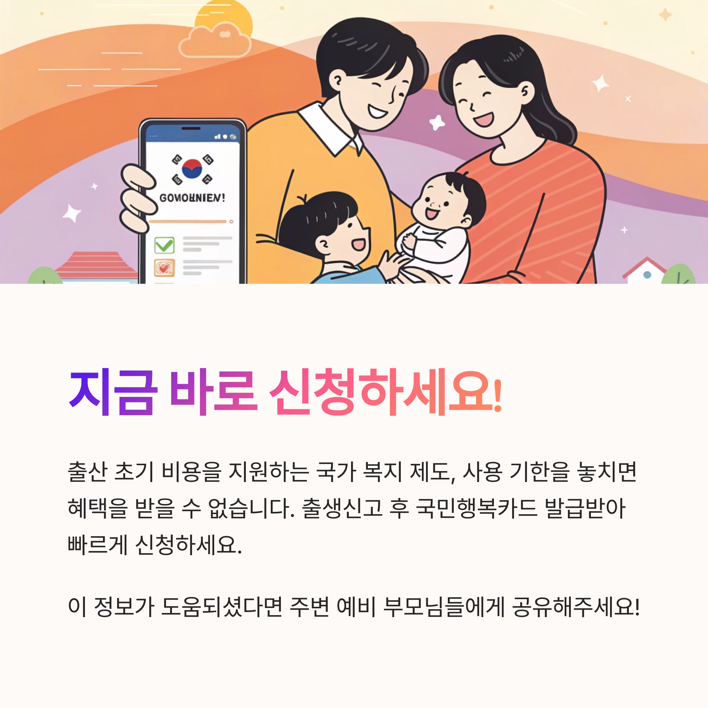 빠르게 출생신고를 완료하고, 국민행복카드가 없다면 미리 발급받는 것이 중요합니다.
