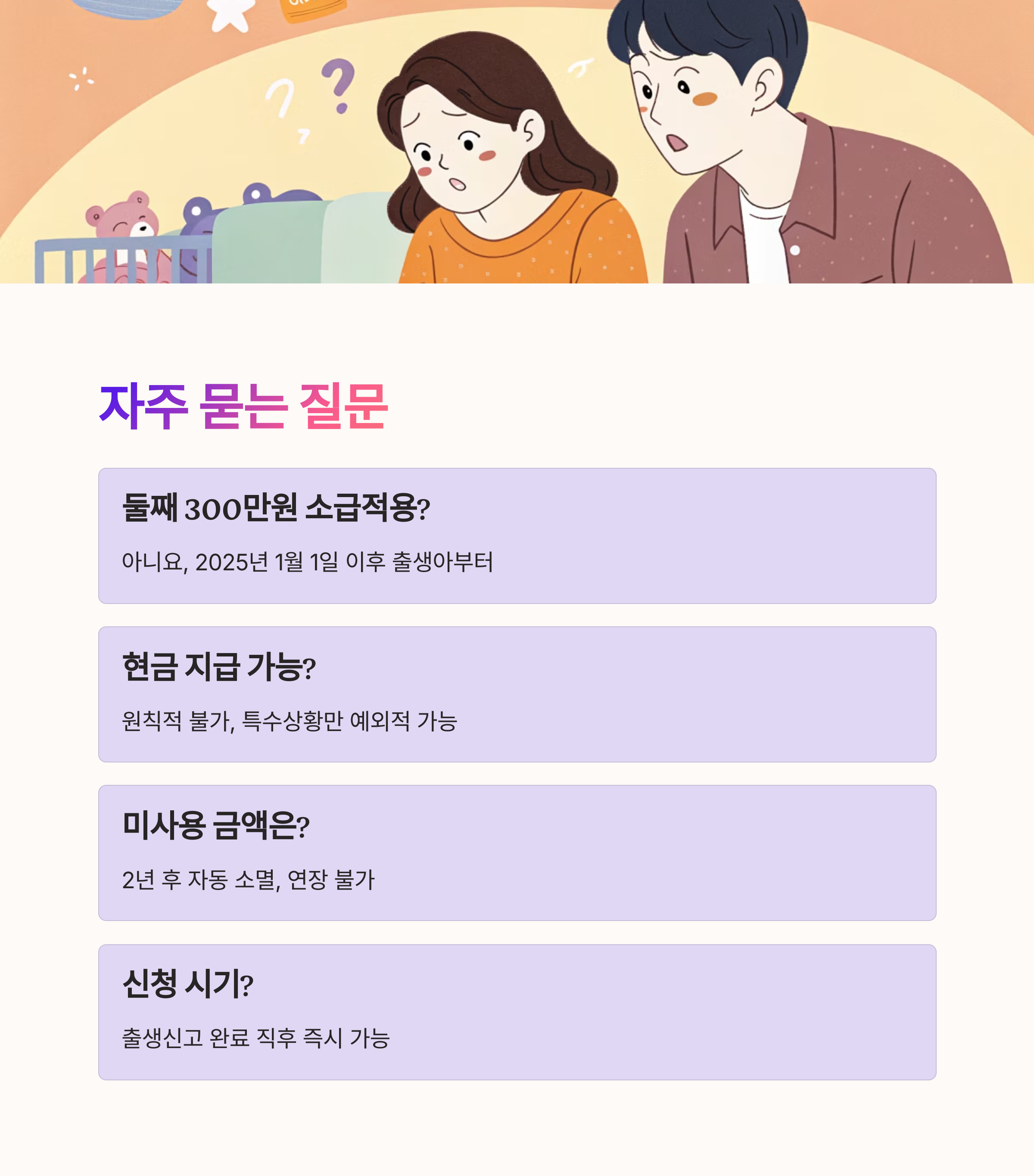 Q. 둘째부터 300만 원 지급이 소급 적용되나요?